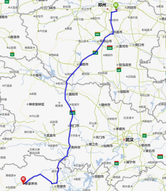 中牟縣去張家界自駕車自助游線路圖全程高速):