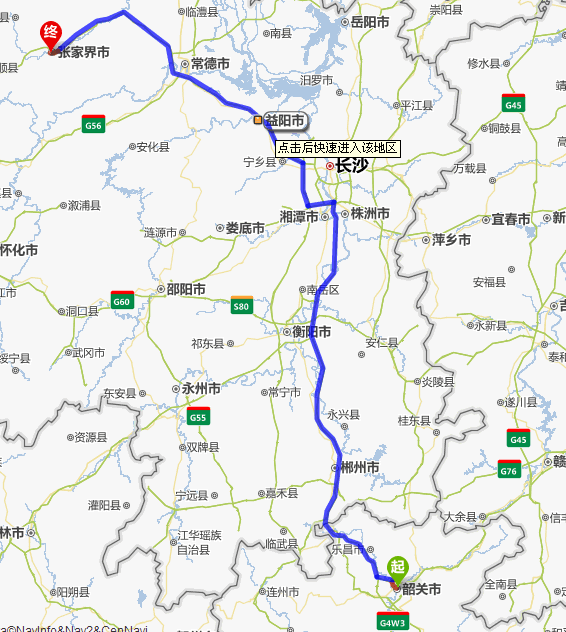 左右,沿途經過韶關市——樂昌市——宜章縣——郴州市——耒陽市——衡陽市——湘潭市——寧鄉(xiāng)縣——益陽市——常德市——慈利縣——張家界。