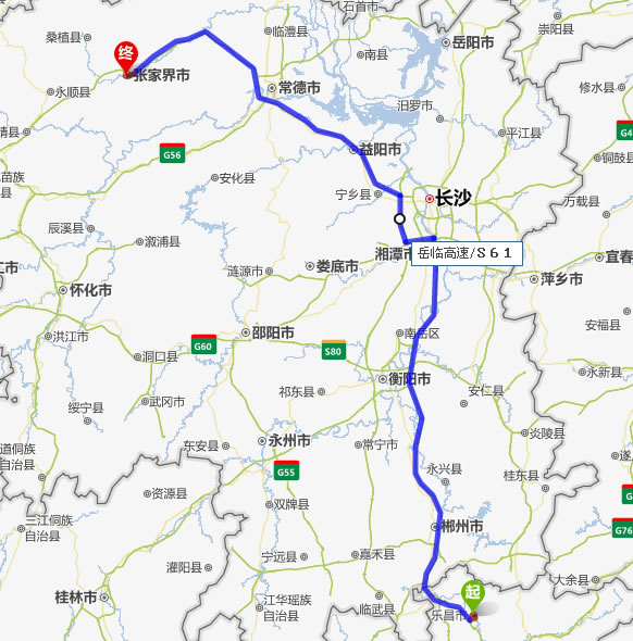 樂(lè)昌去張家界自駕車(chē)自助游線路圖全程高速):