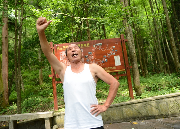 二是老人有個(gè)強(qiáng)健硬朗的身板。十多年前,趙如秋查出患有高血壓和腎結(jié)石,他就堅(jiān)持每天在景區(qū)爬山鍛煉身體,結(jié)果還真的有效,不僅腎結(jié)石消除了,高血壓有所緩解,身體也結(jié)實(shí)得很。如今趙如秋老人雖然68了,但說話中氣十足,走路健步如飛,還能挑上150斤擔(dān)子徒步登上鷂子寨、黃石寨,沿路還能唱山歌。