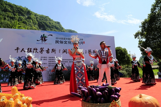 7月29日上午9點(diǎn)30分,由張家界市人民政府主辦,張家界市委宣傳部、市旅游和外事僑務(wù)委員會(huì)、市文體廣電新聞出版局、武陵源區(qū)人民政府承辦,黃龍洞景區(qū)協(xié)辦的“絕版張家界,最炫民族風(fēng)”張家界民俗活動(dòng)月第三場(chǎng)活動(dòng)在黃龍洞景區(qū)啟動(dòng)。現(xiàn)場(chǎng)以土家人慶祝豐收的鼓舞拉開序幕,土家鼓舞歡悅的節(jié)奏,夸張的舞姿開場(chǎng)就吸引了幾千游人和當(dāng)?shù)厝擞^看。草根夫妻檔歌手,張家界“山水組合許勇、舒維亮麗的服飾,野性的嗓音……”以一首《我在高山唱》歌曲,征服現(xiàn)場(chǎng)游客,贏得雷鳴般的叫好聲。