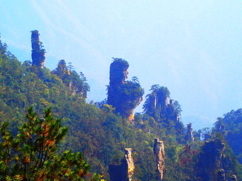 主要景點: 天門山、張家界、袁家界、天子山、十里畫廊、金鞭溪、黃石寨、大峽谷、玻璃橋、猛洞河漂流